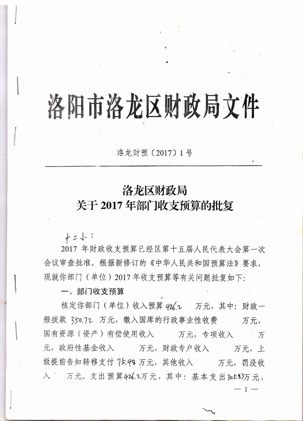 洛阳市洛龙区财政局文件 洛龙财预【2017】1号